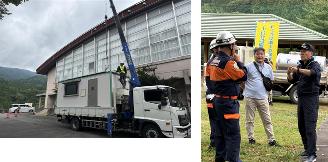 Daiwa Tech unloaded and set up a solar house with a toilet from a truck at the start of the drill, demonstrating its capability to supply electricity in a short time.