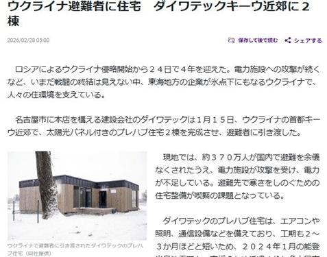 Our company was featured in the February 28, 2026 morning edition of the Yomiuri Shimbun Tokai edition as a Tokai-based enterprise contributing to Ukraine’s reconstruction.